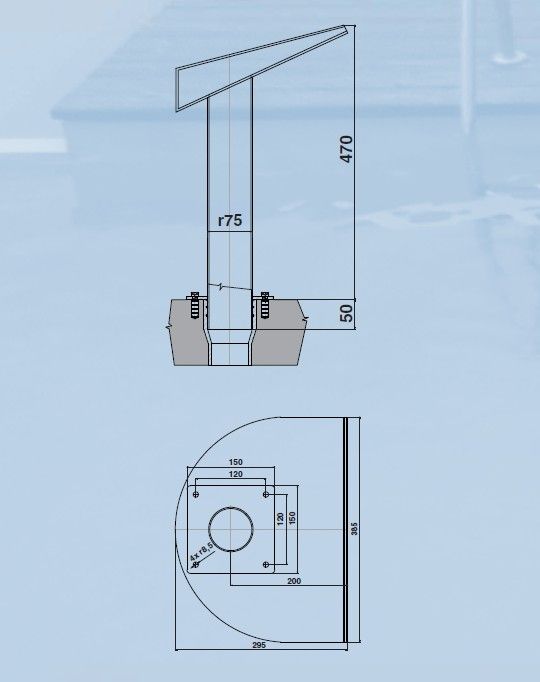 Chrlič půlměsíc široký, š 380 mm, proud vody nahoru, připojení 75 mm, lesk